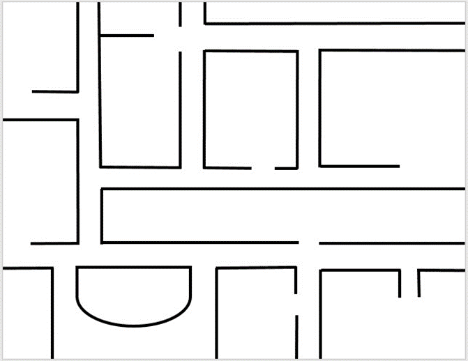 - Draw land, streets/roads and any water or mountain features